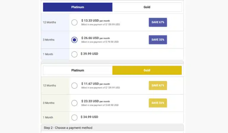 | Platinum Membership | $34.99/month | VIP profile highlighting |